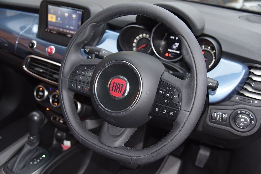 フィアット500X ジーンズ 電動レザーシート ACC BSM 2DINナビTV ETC Bカメラ ドラレコ充実装備 新入庫!